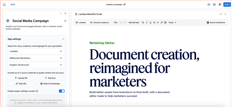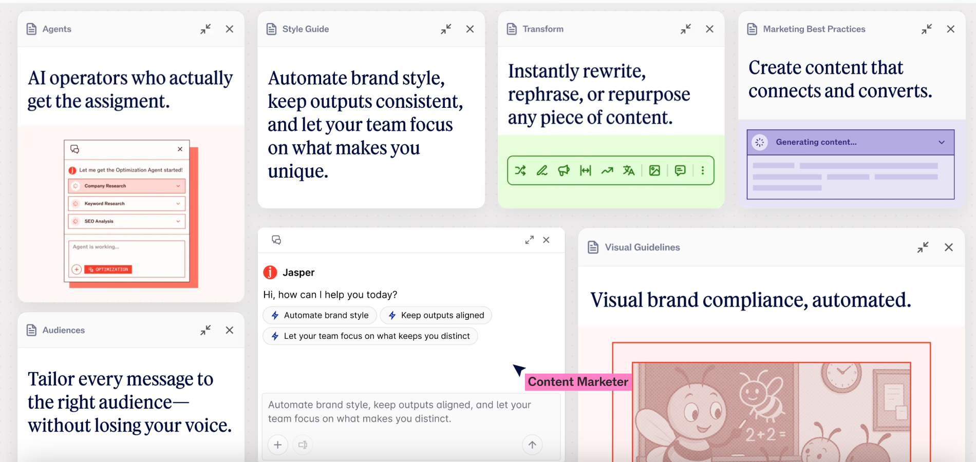 Jasper AI ist ein KI-gestütztes Tool zur Unterstützung der Texterstellung im Marketing. Es hilft Marketingteams dabei, Inhalte für Blogs, E-Mails und Social-Media-Beiträge zu erstellen und zu optimieren. Dabei analysiert Jasper AI bestehende Texte und Zielgruppen, um passende Formulierungen vorzuschlagen, die den jeweiligen Kommunikationszielen entsprechen. Das Tool soll die Effizienz bei der Content-Produktion erhöhen und den Arbeitsaufwand bei der Erstellung schriftlicher Inhalte reduzieren.