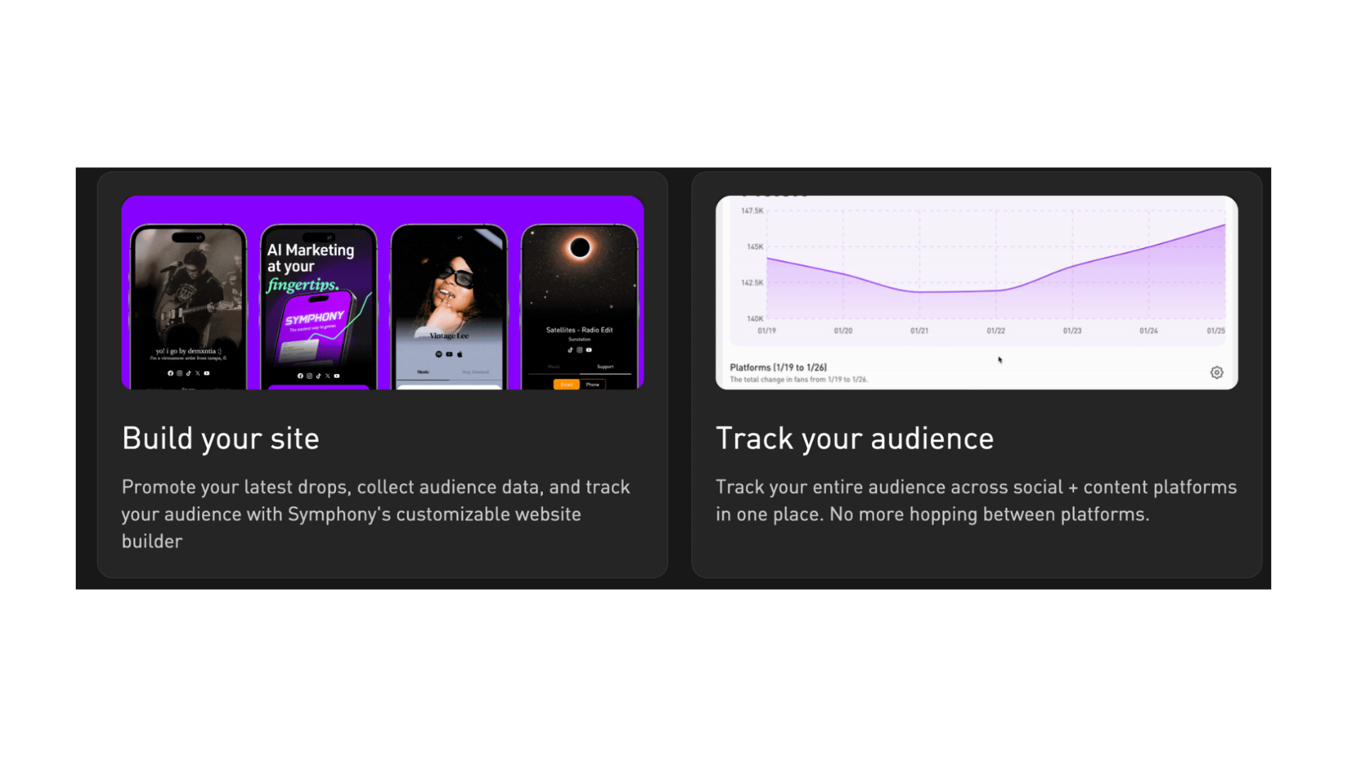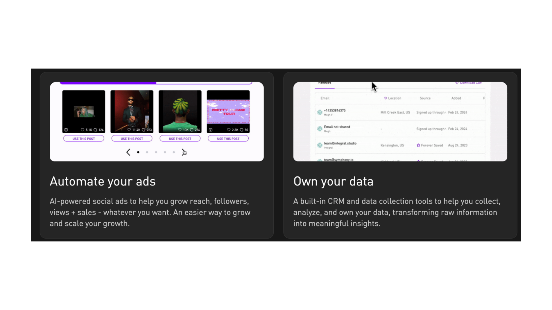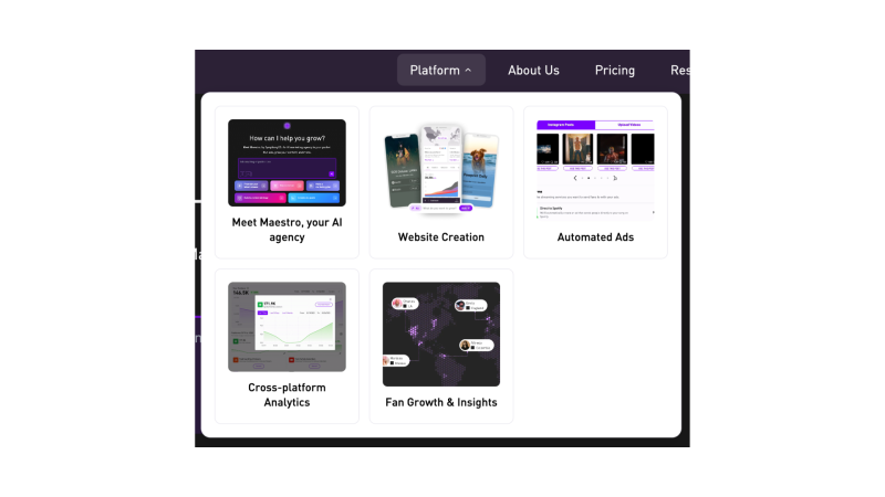 SymphonyOS ist eine Plattform für automatisiertes Musikmarketing und Fan-Datenverwaltung. Sie bündelt Tools für KI-getriebene Werbekampagnen, Landing-Pages, Link-Management und analytische Auswertungen, um Fan-Interaktionen über verschiedene Kanäle zu erfassen und zu strukturieren. Die Lösung unterstützt Künstler und Managements dabei, Marketingmaßnahmen effizienter zu planen und auszuwerten.